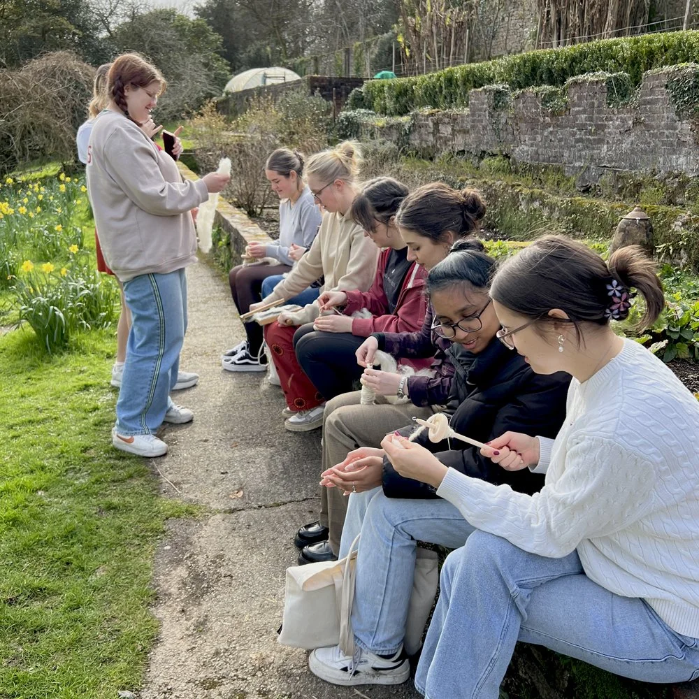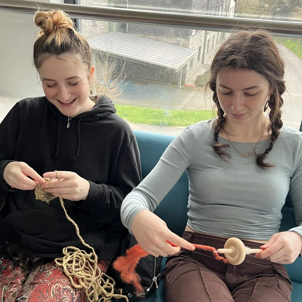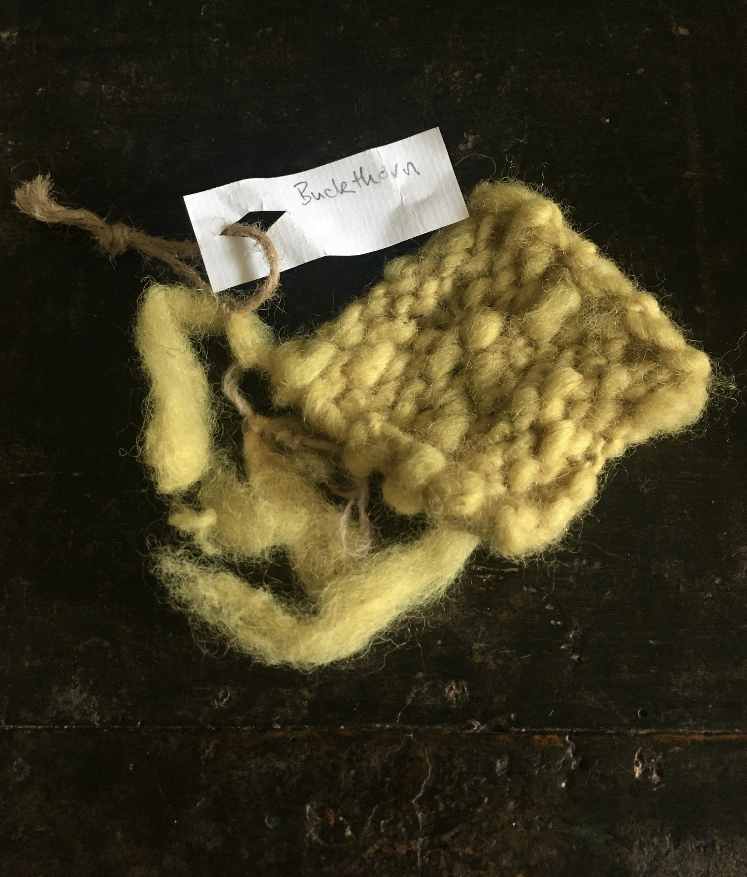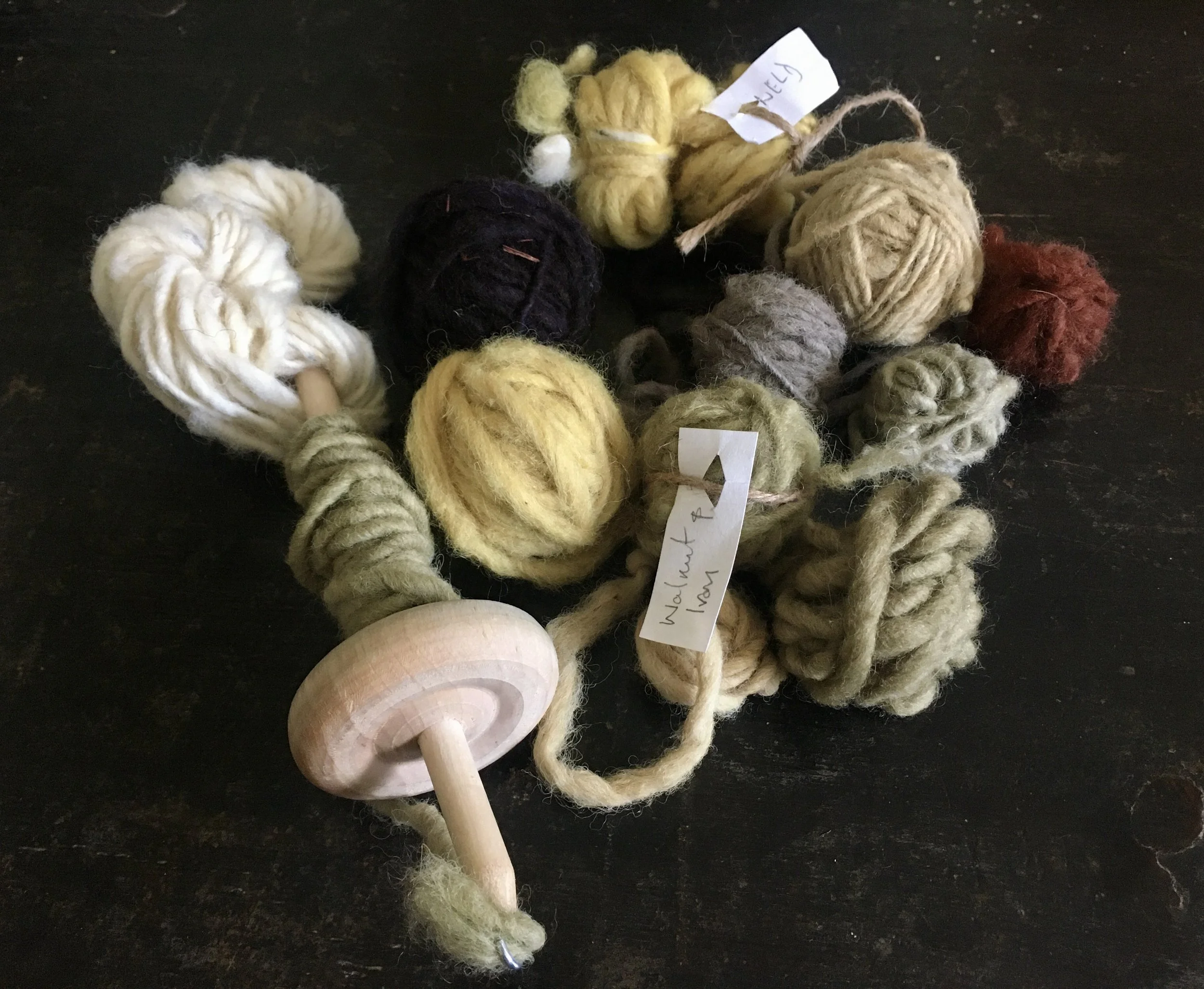 Equipment: Fleece Carders, Drop Spindles, Knitting needles Handloom Crochet hooks, Iron, Onion skins, Madder Weld, Purple Loostrife Gypsywort Buckthorn Tansy & Walnut